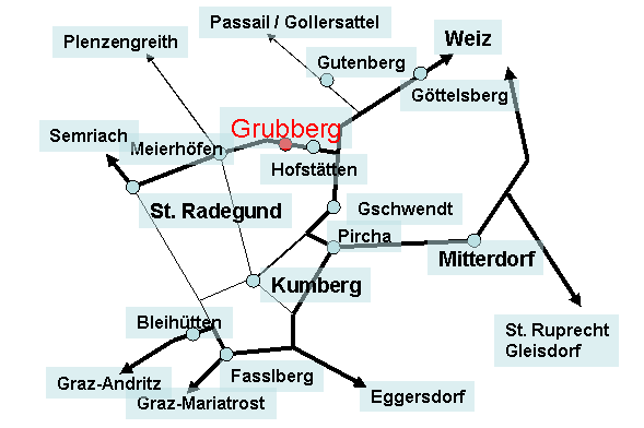 Anfahrt von Graz (PDF: 170KB), Anfahrt von Weiz (PDF: 166KB), Anfahrt von Gleisdorf (PDF: 171KB), Anfahrt von Semriach, St. Radegund (PDF: 152KB)